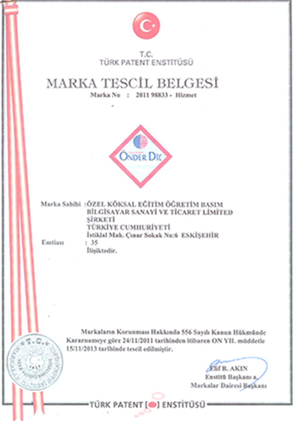 (ÖNDER DİL) ÖZEL KÖKSAL EĞİTİM ÖÄžRETİM BASIN LTD.ÅžTİ.nin Marka VekilliÄŸini MEGA PATENT yapmıştır.