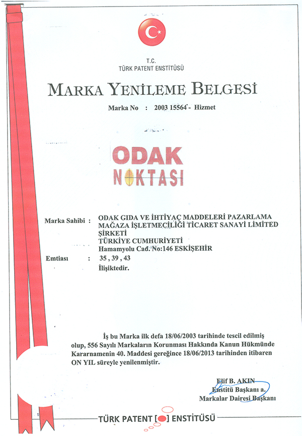 EskiÅŸehirin seçkin firmalarından olan kozmetik ve gıda sektöründe faaliyet gösteren ODAK NOKTASI Marka Tescil Belgesini yeniledi.