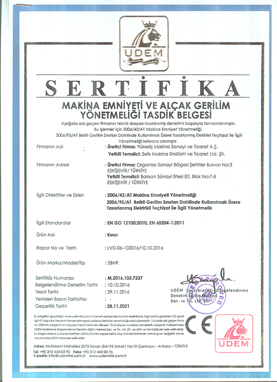 - YÜKSELİŞ MAKİNA SAN.TİC. A.Ş CE BELGELERİNİ ALDI