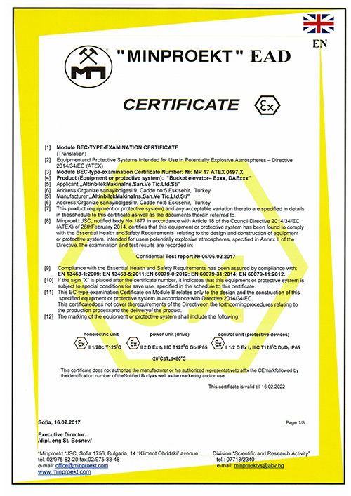 ALTINBİLEK MAKİNA İNŞAAT SAN. TİC. LTD.ŞTİ ATEX BELGESİNİ ALDI